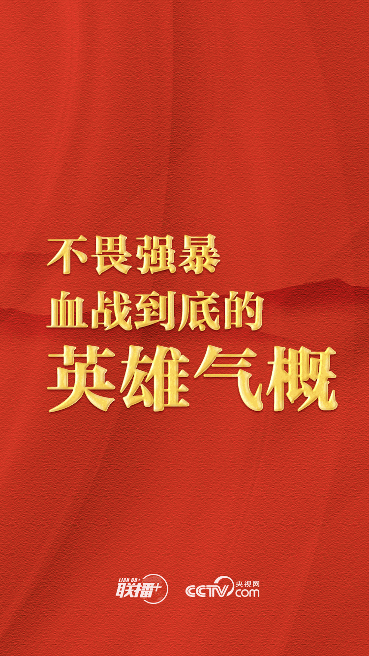 伟大抗战精神,是中国人民弥足珍贵的精神财富,将永远激励中国人民克服一切艰难险阻、为实现中华民族伟大复兴而奋斗。央视网《联播+》四张海报与您共同感悟伟大抗战精神,凝聚奋进力量。