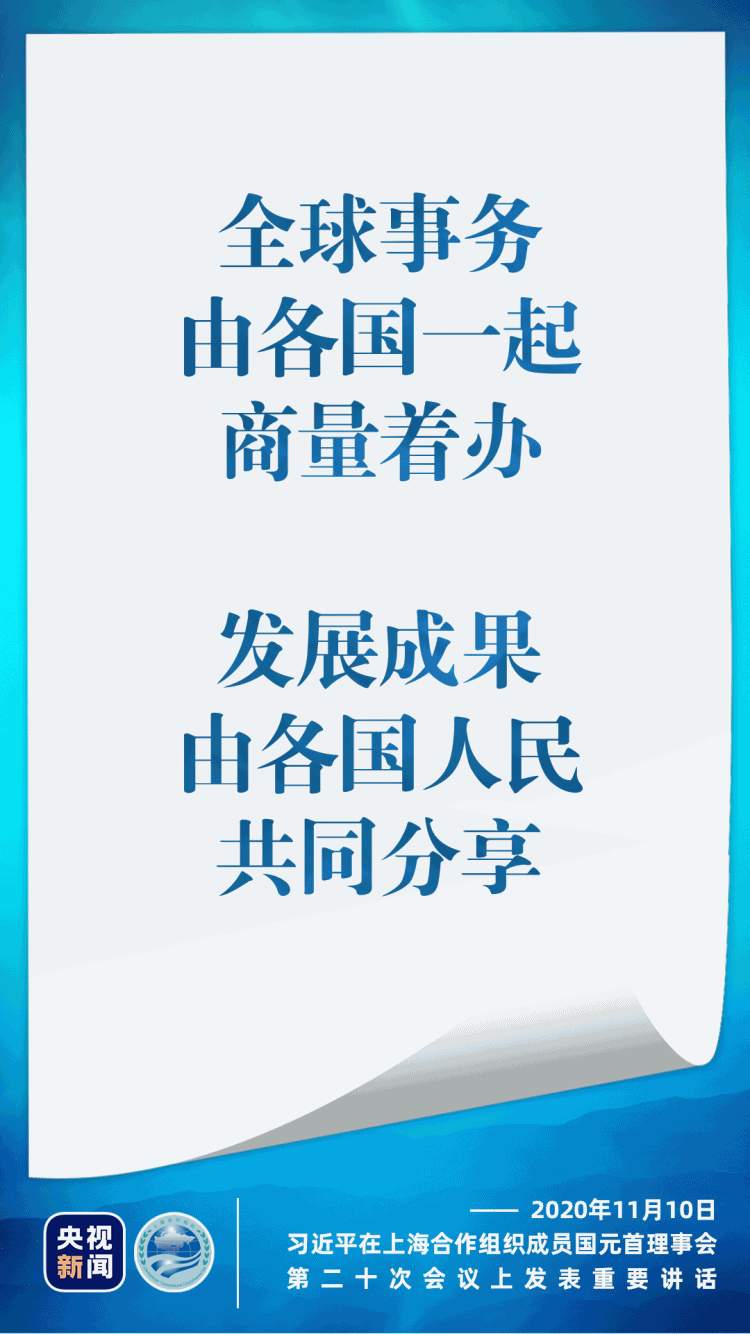 11月10日晚,国家主席习近平在北京以视频方式出席上海合作组织成员国元首理事会第二十次会议并发表重要讲话,这些话掷地有声。