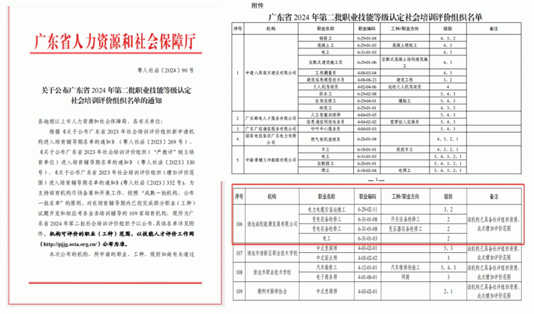 近日,广东省人社厅发布《关于公布广东省2024年第二批职业技能等级认定社会培训评价组织名单的通知》,必赢线路检测中心集团下属清远诚创能源发展有限公司成功进入“广东省职业技能等级认定社会培训评价组织”名单,是清远地区首家获得电力职业技能等级社会培训评价组织资质的企业。