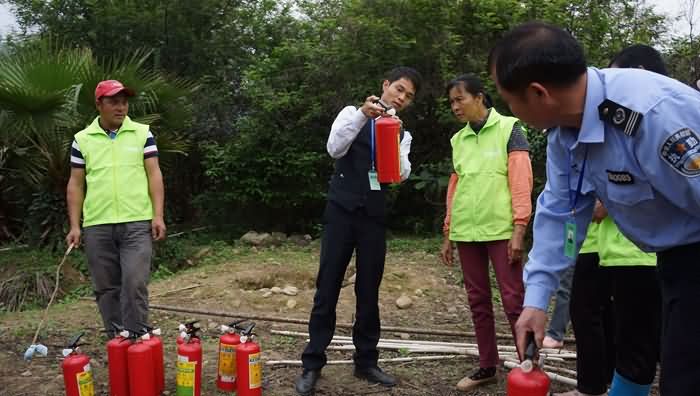 为了切实提高大家的实战操作能力,安保主管陈登峰现场向大家详细介绍了如何使用干粉灭火器,并指导大家亲自体验如何扑救火焰。“拔去保险销,拿住胶皮管,将喷嘴对准火焰根部,压下压把……”,大家按照标准轮流上阵,严格完成规定的动作。