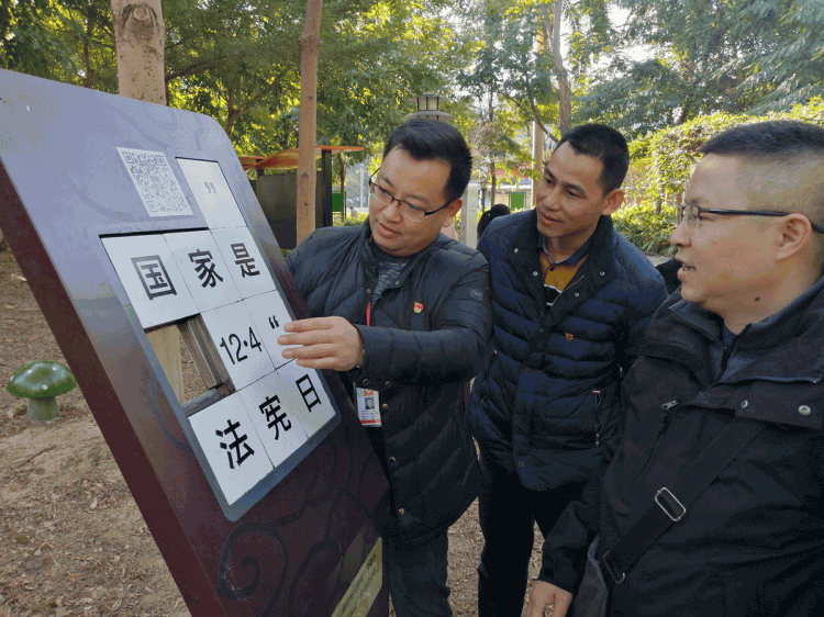 图为我司参观人员认真浏览法治文化公园内宣传的宪法知识