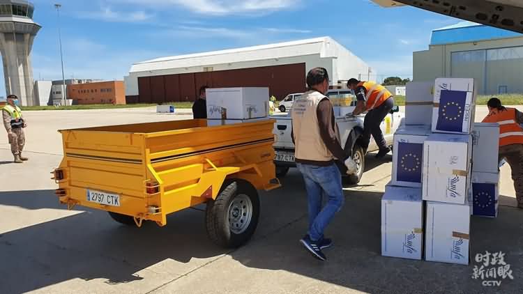 △6月5日,满载防疫物资的中欧班列在浙江义乌西站启程,经由新疆阿拉山口口岸出境,前往西班牙首都马德里。