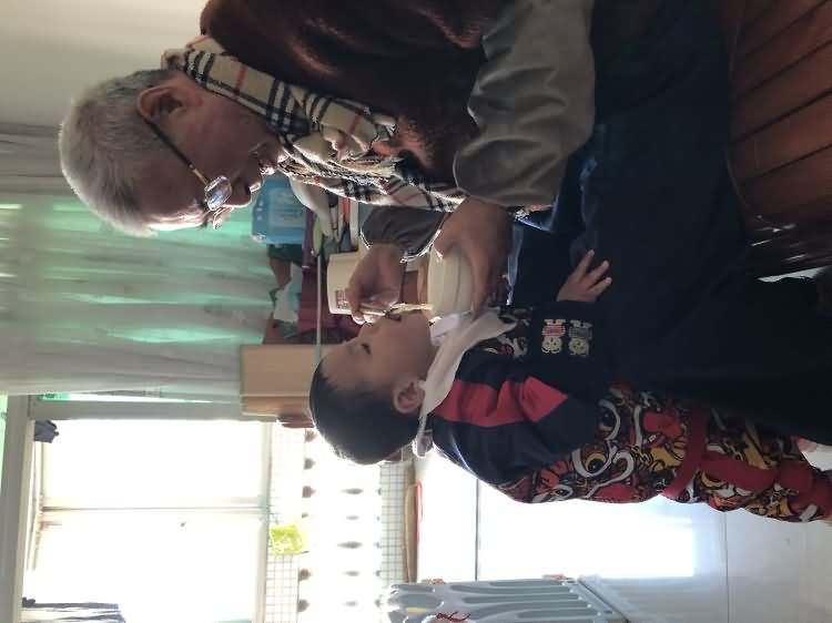员工家里长辈与小朋友互动
