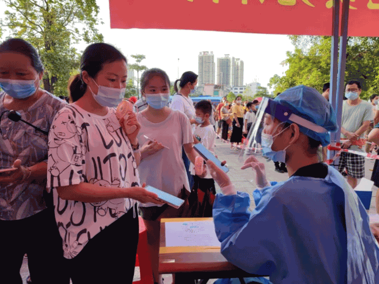 人群中,遇到不会操作手机的市民,“她”引导他们到遮阳棚等阴凉处,手把手一步步教;人群中,发现孕妇、幼儿或长者,“她”引导他们到绿色通道,减少特殊群体的等候时长;人群中,遇到没有手机的长者,“她”拿出自己的手机帮助他们录入信息生成粤核酸码......