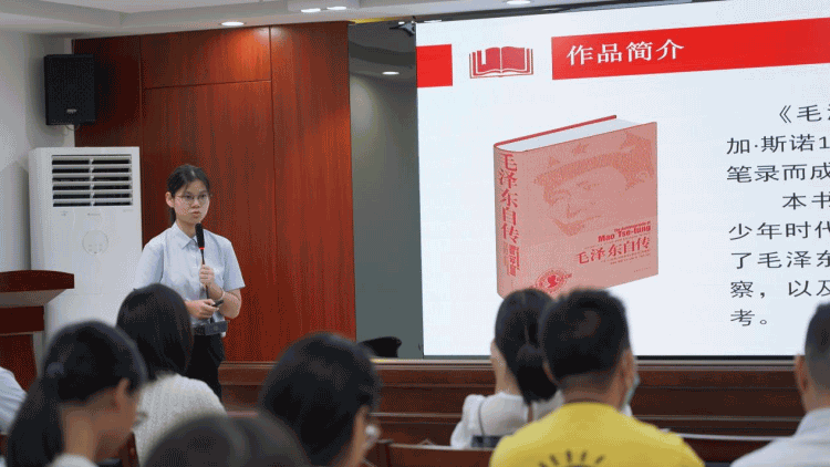 轮流上台,向现场观众推荐《毛泽东自传》《平凡的世界》《父父子子》《浴血荣光》等著名作品,有的介绍人物角色的经历和美好品德,有的分享读书过程中引发的感悟,有的赞美中华民族精神的传承与发展……台上选手们声情并茂、真情流露的动情分享,引起了现场评委和观众的强烈共鸣,现场响起一阵又一阵的掌声。