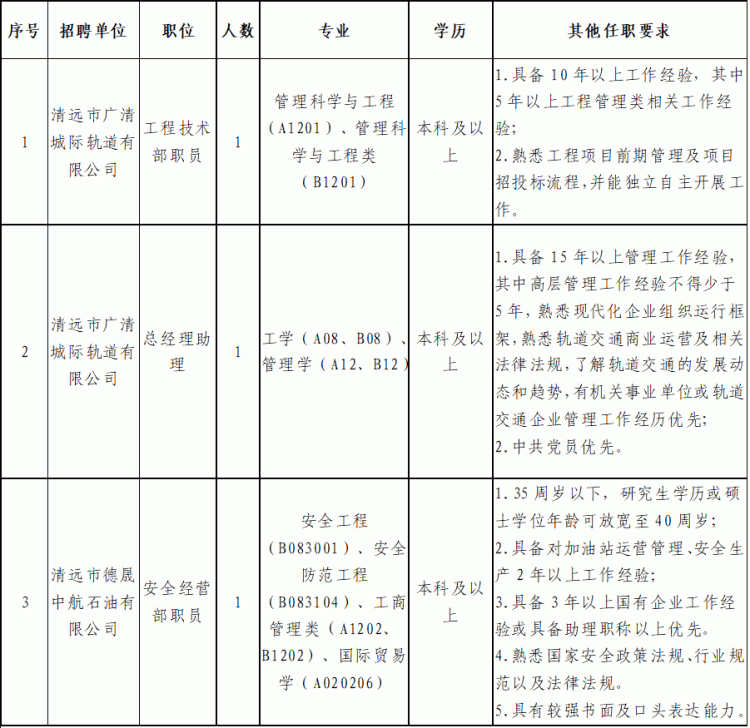 (三)招聘岗位及具体要求: