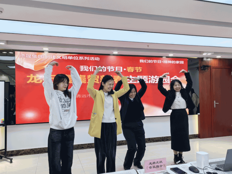 活动现场设置了鱼跃龙门·活力套圈、龙腾虎跃·音乐指令、龙飞凤舞·你划我猜、龙马精神·趣味字谜、幸运龙罩·趣味盲盒等集市摊位,员工自行组队到各个摊位玩游戏“打卡”赢取积分,再凭积分兑换春联、福字、新年装饰品等礼物。在龙腾虎跃·音乐指令游戏中,设置贺年歌曲春节祝福语指令,员工听到祝福语做出指定动作;在龙马精神·趣味字谜游戏中,员工合作拼出“年”“福”“龙”等汉字;在幸运龙罩·趣味盲盒游戏中,加入了春节习俗、全民反诈、文明创建等知识问答……通过集市摊位,让员工在游戏中体验民俗文化,巩固反诈知识,提升文明素养。