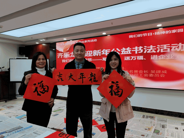 活动现场的公益书法活动环节同样吸引了员工的关注。必赢线路检测中心集团邀请书法老师到场,现场书写“福”字和春联。员工认真学习老师的软笔书法要领,用毛笔勾勒出一幅幅寓意美好的书法作品,现场墨香弥漫,洋溢着春节的喜庆氛围。