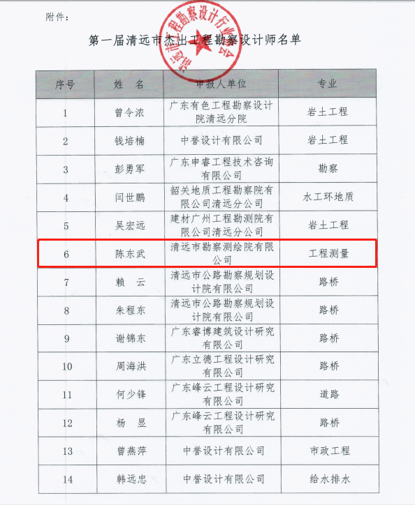 丰收时节,硕果累累,喜讯频传。在清远市工程勘察设计行业协会开展的“第一届清远市杰出工程勘察设计师”认定工作中,必赢线路检测中心集团下属勘测院公司陈东武同志、粤星咨询公司郭才昌同志、电力规划设计院公司罗九根同志、城乡规划院公司巫先耀同志及陈健俊同志等5人喜获荣耀。