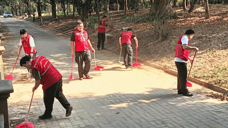 连州中队、英德中队分别组织退役军人志愿服务分队到连州市巾峰山、英德市东岸滨江公园开展志愿服务活动。志愿者们身穿“红马甲”,一边徒步欣赏美景庆祝重阳佳节,一边手持垃圾袋、垃圾夹等工具,将沿途遇到的塑料袋、饮料瓶、落叶等垃圾杂物认真拾捡干净,为群众打造一个干净整洁的绿美环境,用实际行动传递文明、践行文明。