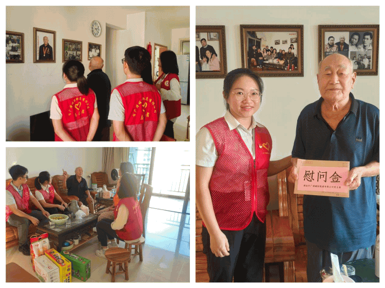 随后,全体党员干部组成志愿者队,走进共建社区高龄独居老人侯伯(化名)家中,开展探访活动。92岁的侯伯是一名曾参加过抗美援朝战争并荣立二等功的退役老兵。探访期间,志愿者队与侯伯就以往的热血时光、当前的身体状况、家庭情况进行深入交谈,并送上粮油礼品和慰问金。侯伯表示:“感谢党,感谢国家,我真切感受到了‘老有所养、老有所依、老有所乐、老有所安’,感谢年轻的你们!”