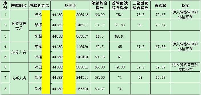 备注:1、为保护应聘人员的隐私,上表对个人信息进行了技术处理;