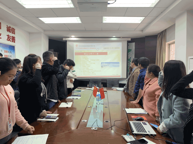 在“作一番感言”时,现场同事结合本次主题活动分享了自己对于“文明单位建设”“道德模范”“诚信建设”等活动内容的感言。此外,活动当天还开展了“作一份承诺”活动,全体员工握起右拳,齐声承诺做到《清远文明十二条》。
