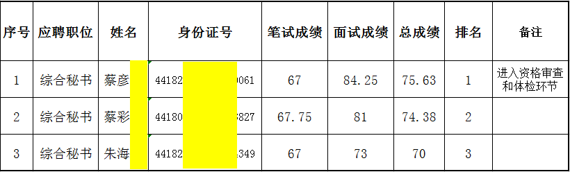 注:1、为保护应聘人员的隐私,上表对个人信息进行了技术处理;