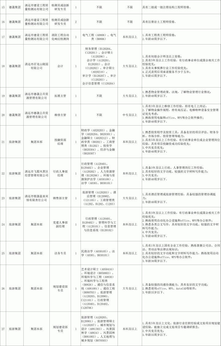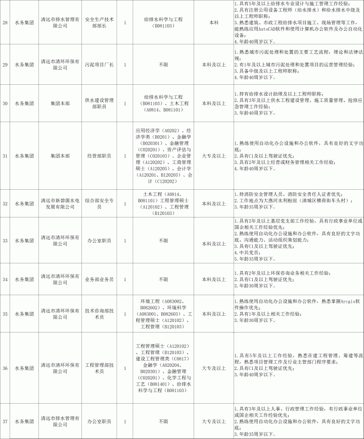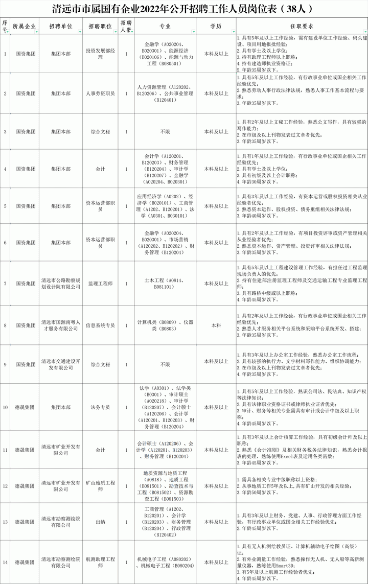 为进一步加强清远市属国有企业人才队伍建设,根据企业经营发展需要,按照“公开、平等、竞争、择优”的原则,公开招聘市属国有企业员工38人,诚意邀请符合条件的人员报名应聘。现将有关事项公告如下: