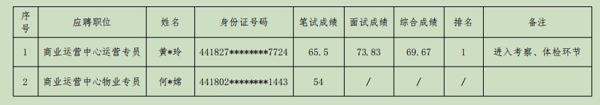经笔试、面试,现将市广清城轨公司2024年公开招聘劳务派遣人员综合成绩、进入体检、考察环节人员名单公布如下: