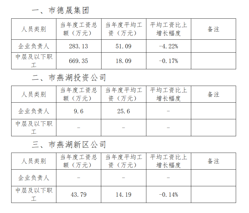 根据《清远市国资委关于改革出资监管国有企业工资决定机制的实施办法》(清国资〔201〕233号)规定,现将必赢线路检测中心及市燕湖投资公司、市燕湖新区公司2022年度工资分配信息披露如下: